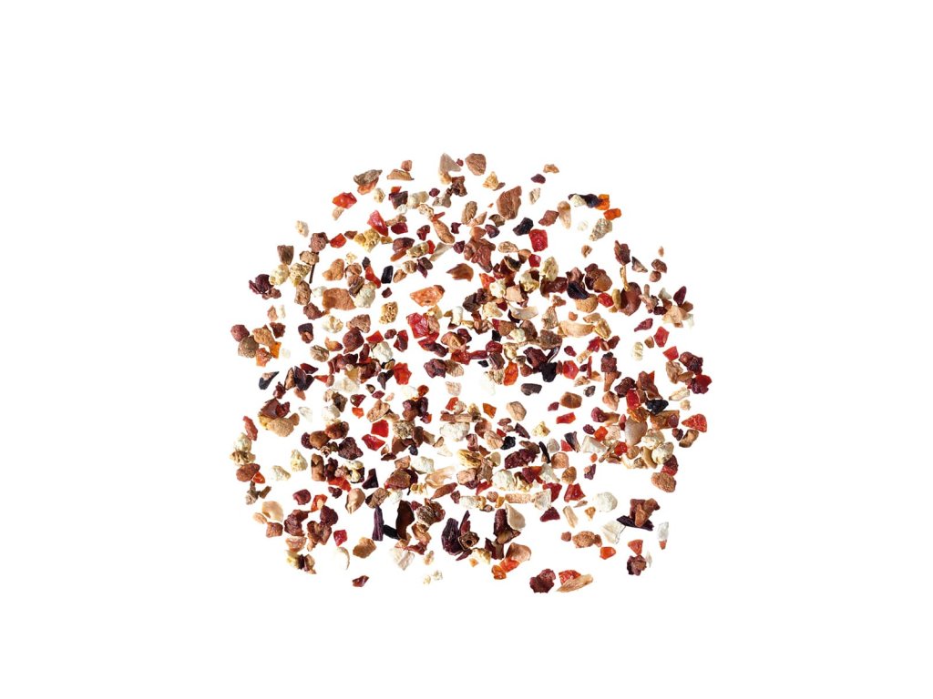 - Manzanas (47%), escaramujos, piel de naranja, raíz de achicoria tostada (6%).