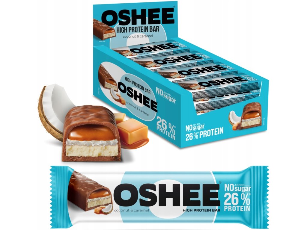 La barra de proteína OSHEE con sabor a coco y caramelo es una combinación única de sabor excepcional y contenido proteico.