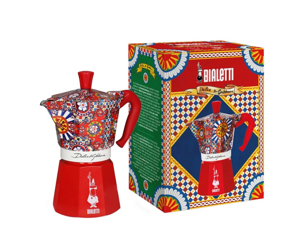 El resultado de la unión de dos iconos del diseño italiano. Una tetera tradicional para preparar café de calidad en casa de Bialetti , símbolo de la cultura cafetera italiana, diseñada por el dúo de diseñadores Dolce & Gabbana , una colección limitada con motivos de mayólica siciliana.