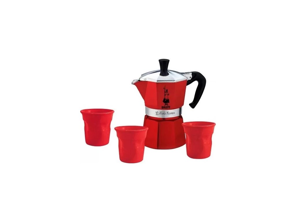 Bialetti Moka Express Set Rojo 3 porciones + 3 tazas