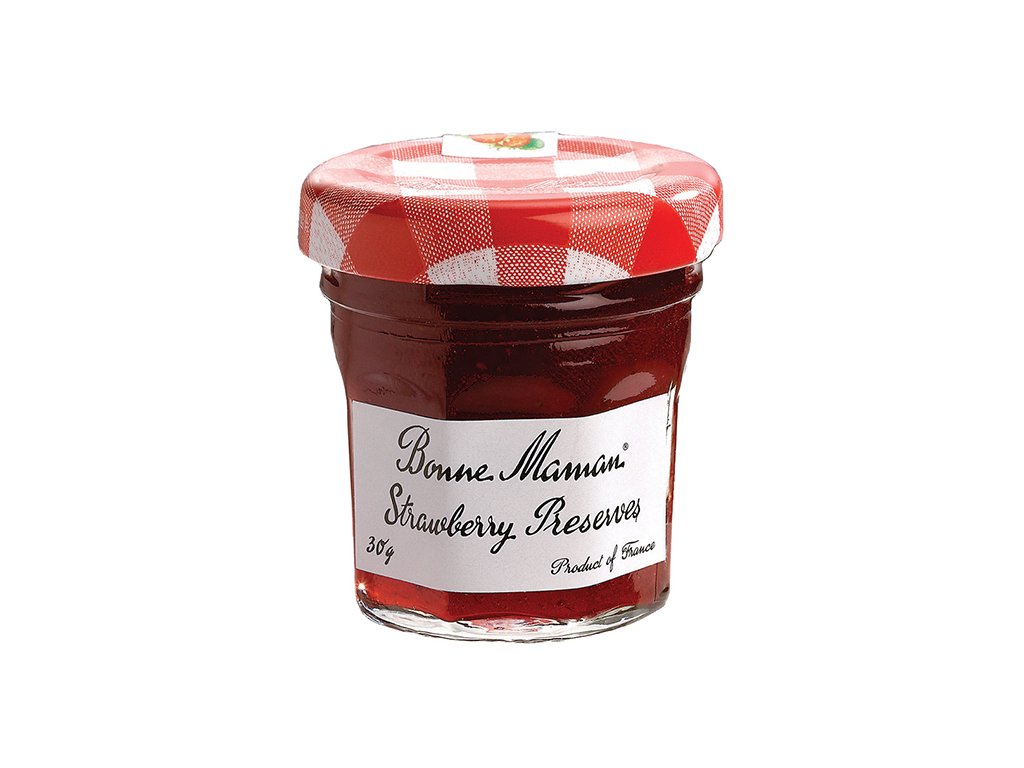 - Gracias a sus trozos de fruta irrestiblemente delicados, la mermelada de fresa Bonne Maman será deliciosa no sólo untada en pasteles, sino también sola.