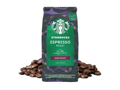 Granos de café tostado oscuro Starbucks® Espresso 450 g Café tostado al nivel 12. Café 100% arábico. País de origen: Portugal Paquete 450g.