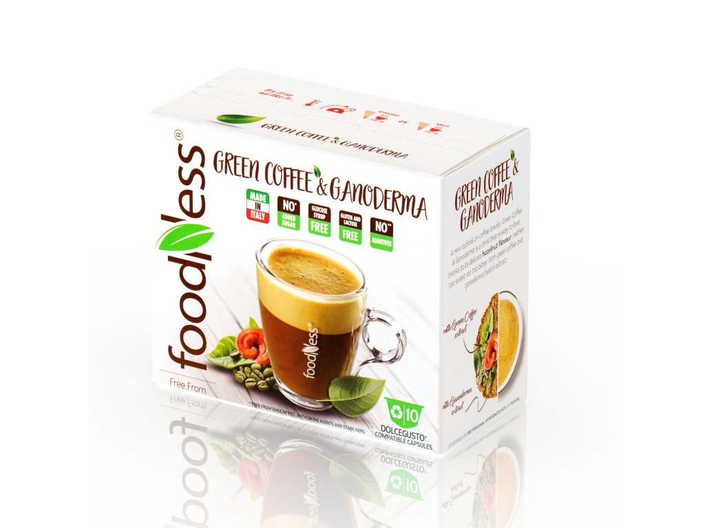 Cápsulas de café verde FoodNess Caffe Verde y Ganoderma con hongo Reishi para Dolce Gusto 10 unidades