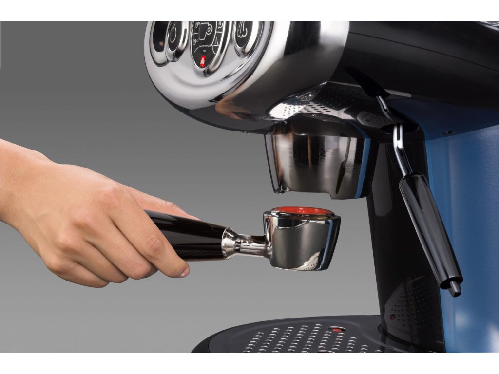 Puedes controlar la cafetera illy Francis X7.1 mediante tres paneles redondos. Además del botón de encendido, cuenta con un botón para controlar la boquilla de vapor y un panel principal con un botón de preparación de café. Puedes configurar el modo de preparación automático o manual con solo pulsar un botón. No te preocupes si no podrás preparar el café manualmente, ya que, por seguridad , el proceso se detendrá automáticamente después de aproximadamente un minuto, para evitar accidentes.