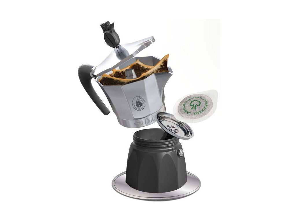 Descubre la innovadora cafetera moka que combina el tradicional ritual italiano con la máxima comodidad. La nueva MokaCiao Induction está diseñada para el sistema de cápsulas de café y te permite preparar hasta 3 tazas de café con una sola cápsula.