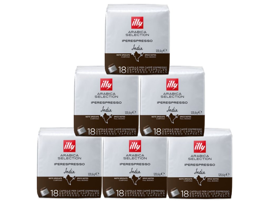 Cápsulas de café 100% arábica Illy IperEspresso India (paquete de 6 x 18 unidades)