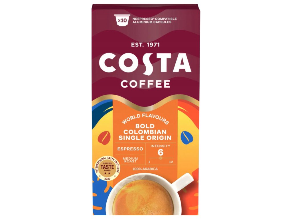 Cápsulas de café Costa Coffee Do Nespresso Bold, tueste único colombiano, 10 unidades