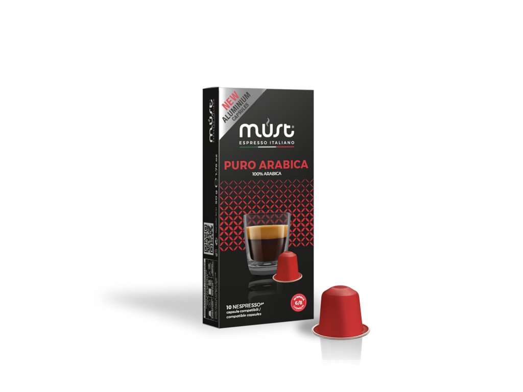 MUST Puro Arábica es un Arábica puro que se caracteriza por su sabor a chocolate negro, aromas florales, a miel y frutos secos, con un toque afrutado, característico de los granos de café recién seleccionados y tostados lentamente. Un café de sencilla complejidad que te conquistará con su sabor pleno, que combina dulzura, suavidad e intensidad.