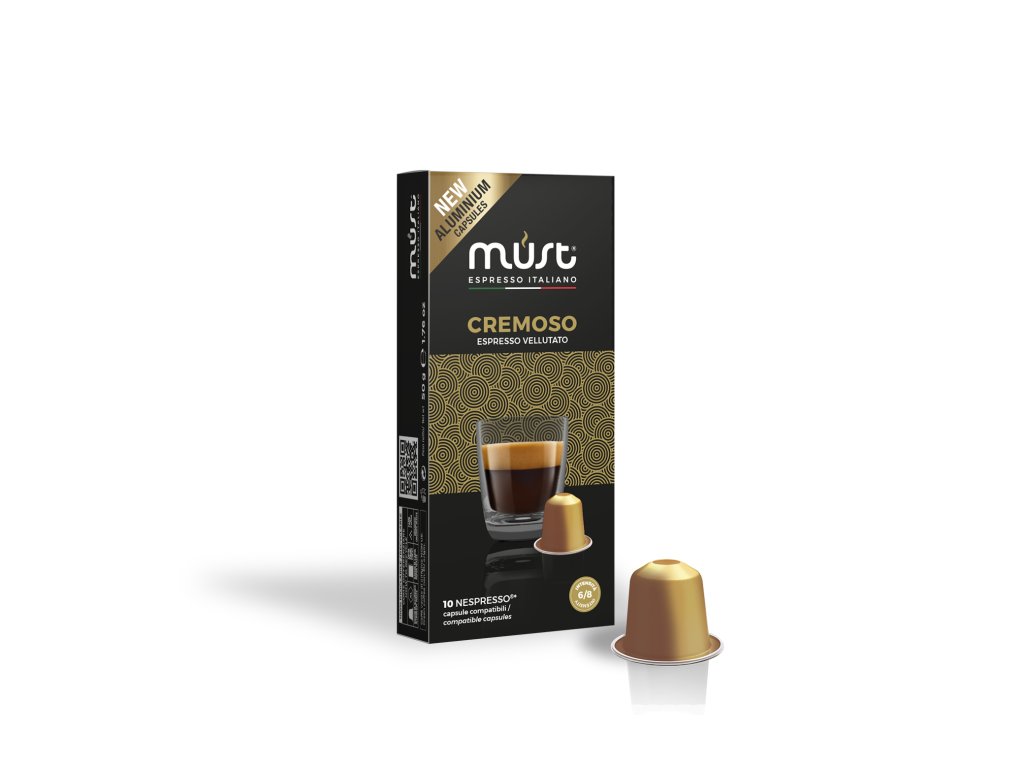 MUST Cremoso. Una envolvente aromática con un sabor dulce, robusto y cremoso, con un cautivador aroma a frutos secos, donde las notas agridulces multiplican el rico sabor del cacao sin azúcar. Cremoso combina sensaciones que dejan un agradable y aterciopelado sabor en boca.