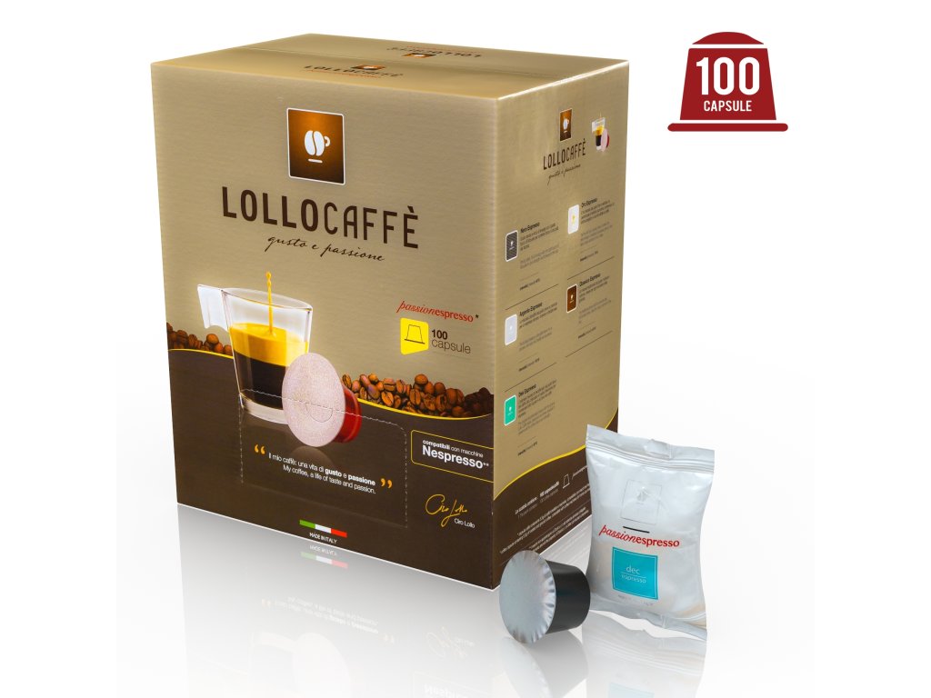 Lollo caffé Deca Espresso cápsulas de café para NESPRESSO® 100 piezas