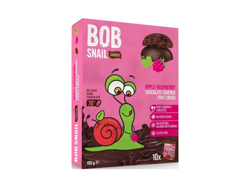 Caracol Bob, golosina de fruta con chocolate, manzana y frambuesa, 100 g