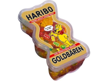 Ositos de oro Haribo 450 g Embalaje: Lata de plástico con forma de osito de peluche rellena de ositos de gelatina de 450 g.