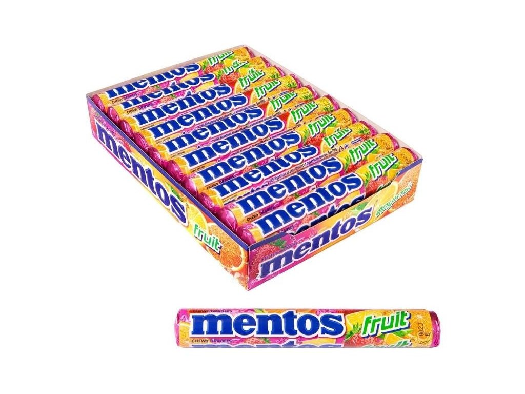 - Los frutos de Mentos son unos caramelos masticables ovalados muy populares.