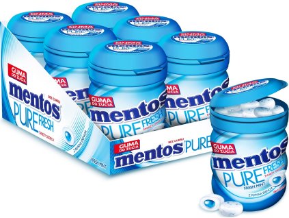 Mentos Pure Fresh Menta fresca 6x60 g Embalaje: 6 latas de plástico de chicle de 60 g cada una.