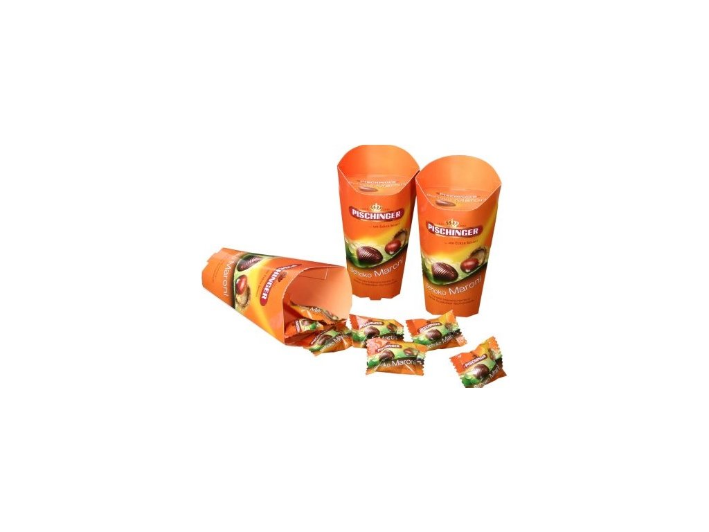Delicada crema de castañas (44%) recubierta de fino chocolate negro.