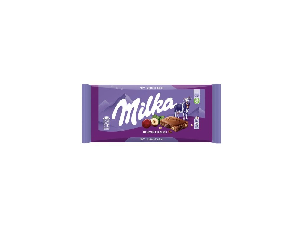 Milka con nueces y pasas es una combinación de frutas y frutos secos. Las pasas jugosas y las avellanas picadas y crujientes garantizan un tentempié perfecto para pequeños y mayores.