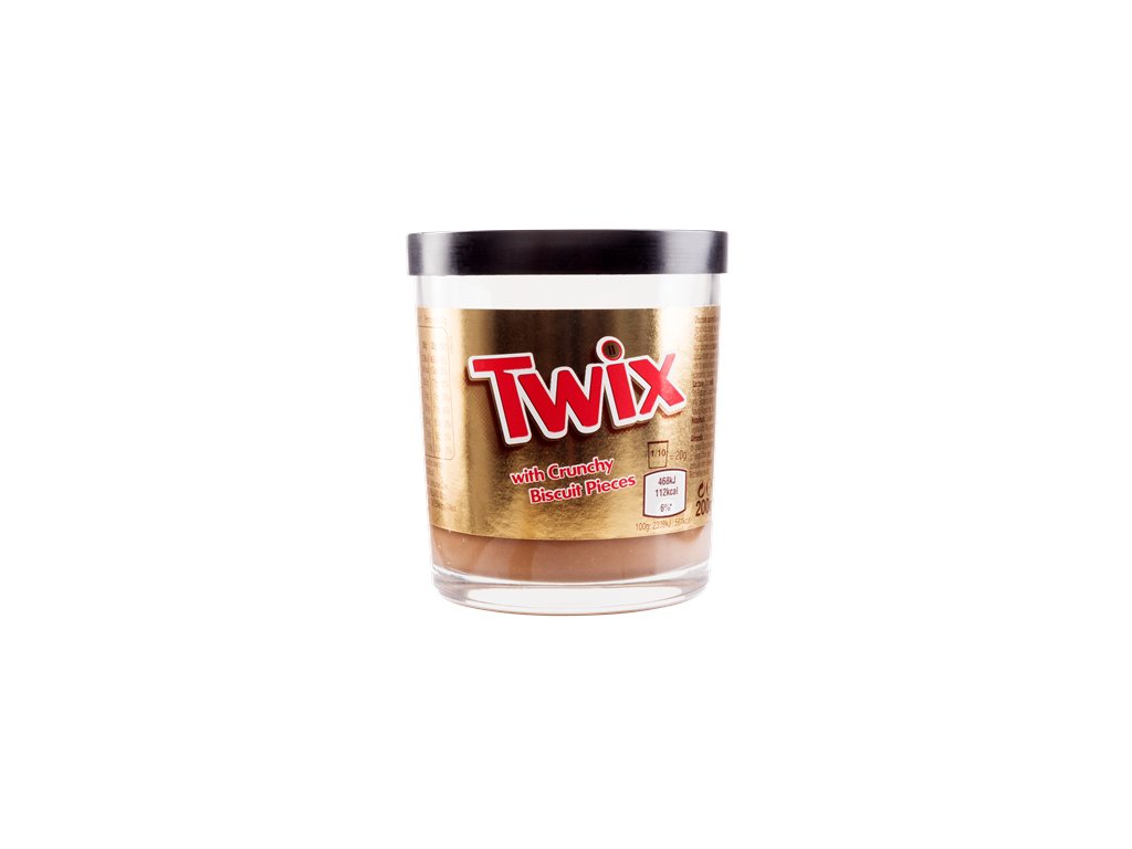 Deliciosa crema Twix, una combinación de caramelo, chocolate y trocitos crujientes de galletas Twix. Pruébala con una tostada caliente o un croissant.