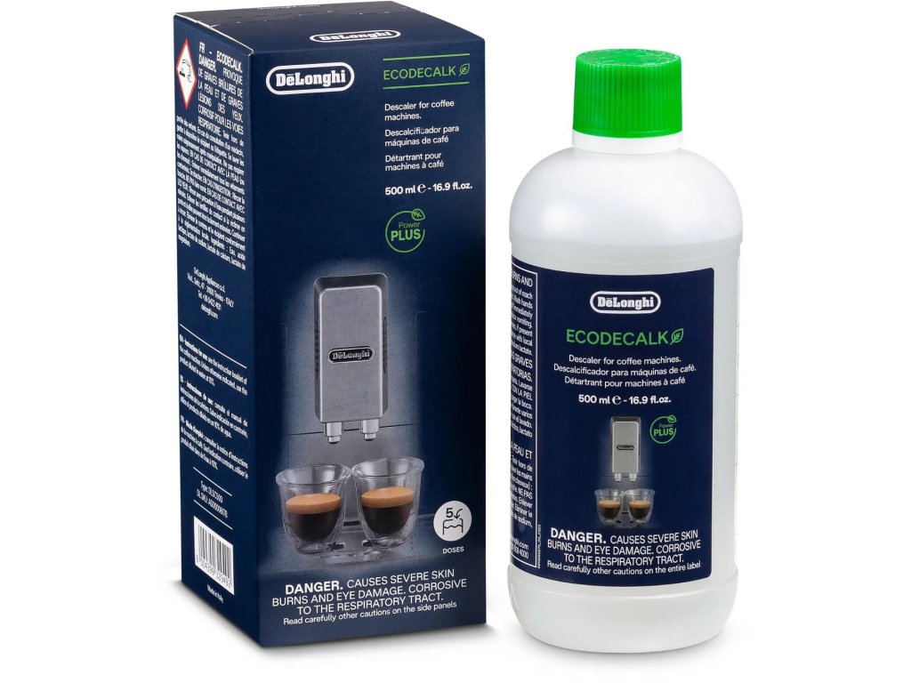 El descalcificador De'Longhi EcoDecalk (500 ml) elimina eficazmente la cal de cafeteras de diversas marcas, incluida DE'LONGHI. Este envase rinde para 5 limpiezas. Su uso regular prolonga la vida útil de la cafetera y reduce el consumo energético. EcoDecalk es ecológico, elaborado con materias primas naturales y biodegradables. El envase también es 100% reciclable: la botella está fabricada con un 50% de plástico reciclado y la caja de cartón cuenta con la certificación FSR. Mantén tu cafetera en perfecto estado.