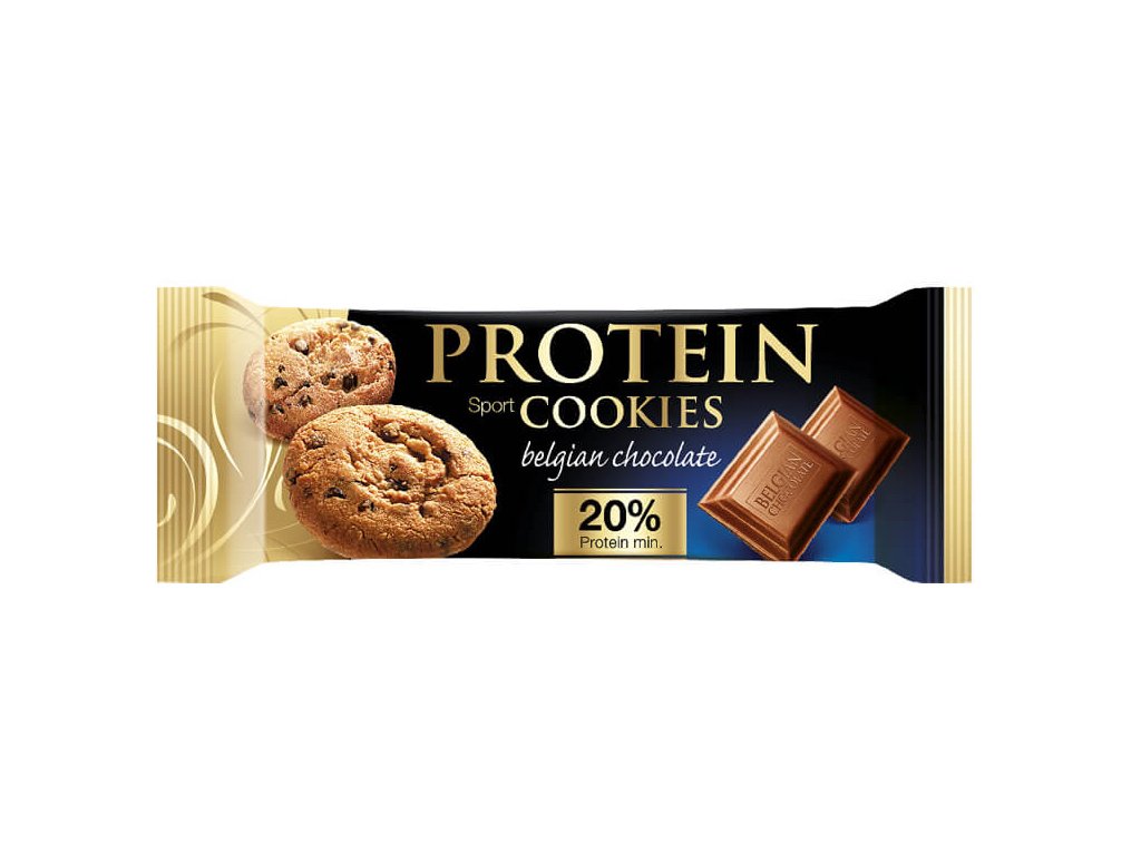 Proteínas 20% ( concentrado de proteína de leche y suero ), harina de trigo , grasa vegetal de palma, azúcar, trozos de chocolate belga mín. 5% (pasta de cacao, azúcar, emulgente: lecitina de soja , aroma natural de vainilla), jarabe de glucosa y fructosa, humectante (glicerina), sal comestible, gasificante (bicarbonato sódico), conservante (sorbato potásico, propionato sódico), aroma. Contenido mínimo de cacao en el chocolate: 50%. Producto de panadería de larga duración. El producto puede contener trazas de: