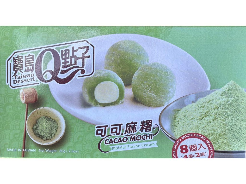 Galletas Mochi Japonesas QMOCHI con sabor a cacao y Matcha 80g