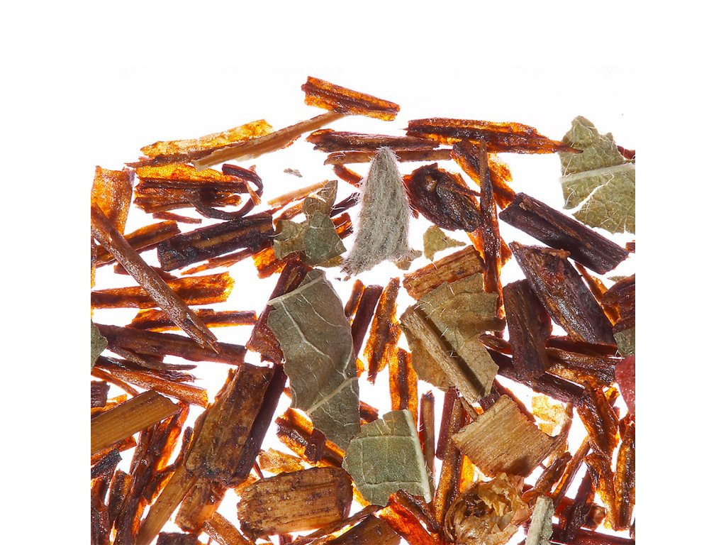 Ingredientes: Rooibos, hojas de fresa, trozos de fresa, aroma.