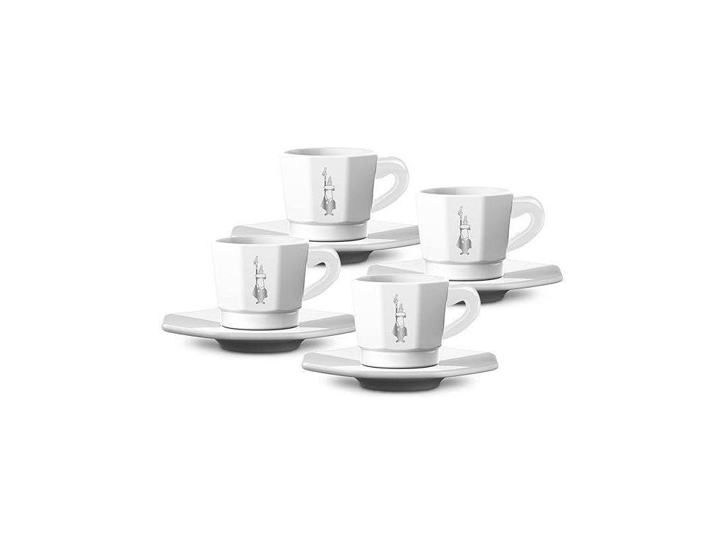 Juego de tazas Bialetti Moka con platillos blancos 75 ml 4 piezas