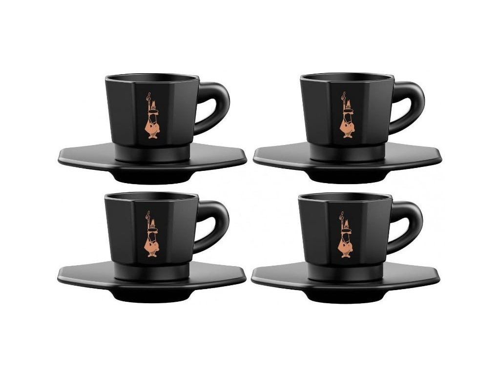 Juego de tazas Bialetti Moka con platillos negros 75 ml 4 piezas