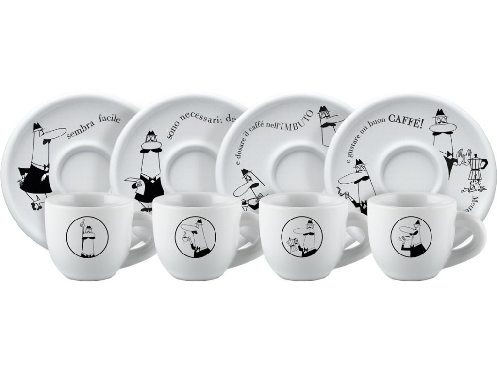 Juego de tazas con platillos Bialetti Moka Carosello blanco 50 ml 4 piezas