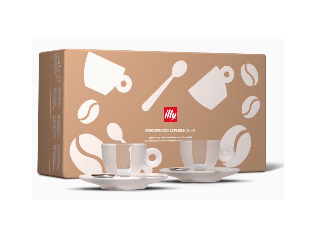 El kit de experiencia Iperespresso está diseñado para mejorar la experiencia de tomar café en casa. El set incluye dos tazas y dos platillos de espresso en Luxion®, diseñados por Matteo Thun, que realzan al máximo la cremosidad del espresso gracias a un juego de transparencias. Esto, junto con dos cucharas de acero inoxidable de diseño, contribuye a que tu experiencia de degustación sea única.