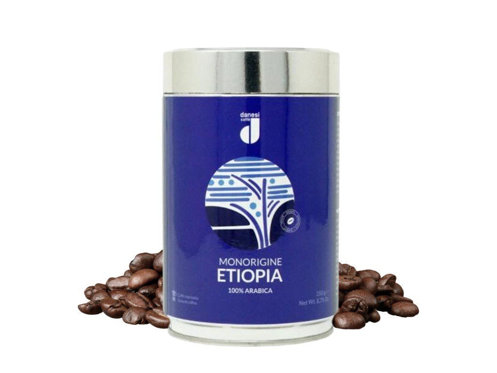 Lata de granos de café monorigen de Etiopía Danesi Caffe, 250 g