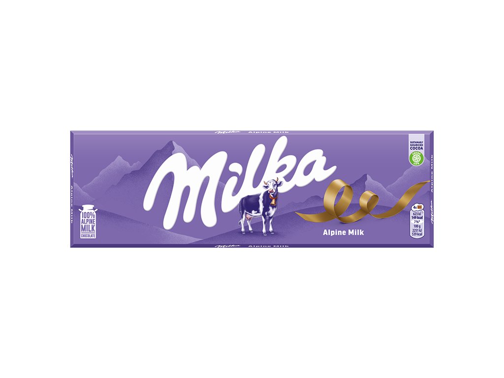 Descubre el delicado sabor del chocolate con leche Milka, que contiene al menos un 30% de cacao. Su secreto reside en la leche 100% alpina, procedente exclusivamente de pequeñas granjas certificadas.