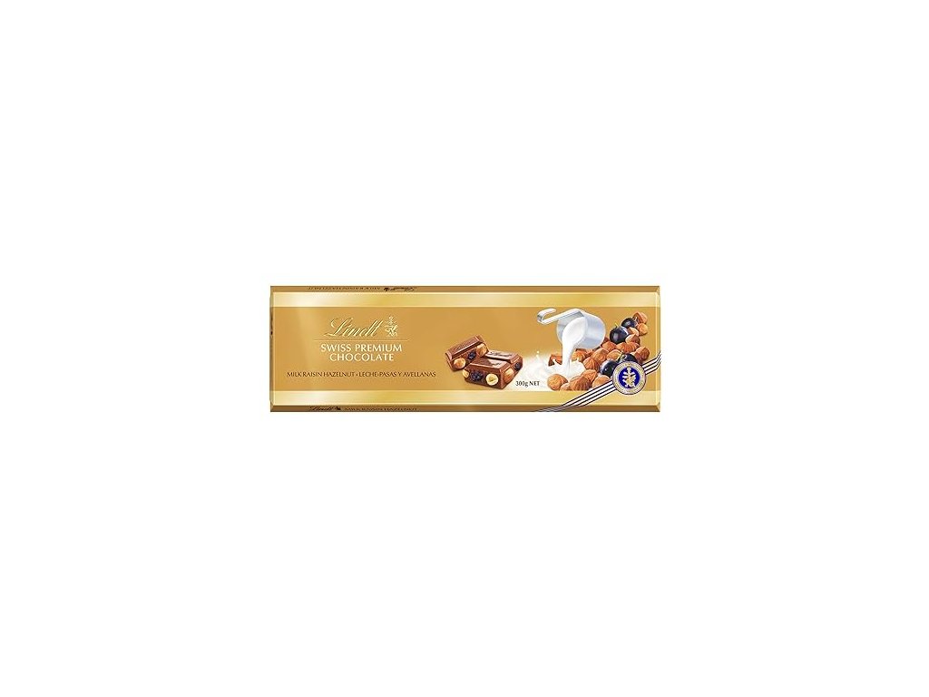 Barra de chocolate con leche Lindt Swiss Premium Gold con pasas, avellanas y almendras: la combinación perfecta. Experimenta el delicioso chocolate con leche suizo Lindt, combinado con delicadas pasas y avellanas y almendras ligeramente tostadas. Ideal para ocasiones especiales, como regalo o como capricho. No dudes en probar esta explosión de deliciosos sabores. Conservar en un lugar seco y alejado del calor.