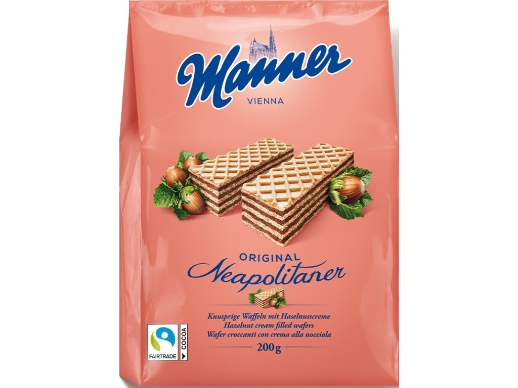 Obleas elaboradas con cinco capas de delicados waffles rellenos con cuatro capas del más fino relleno cremoso de nueces.
