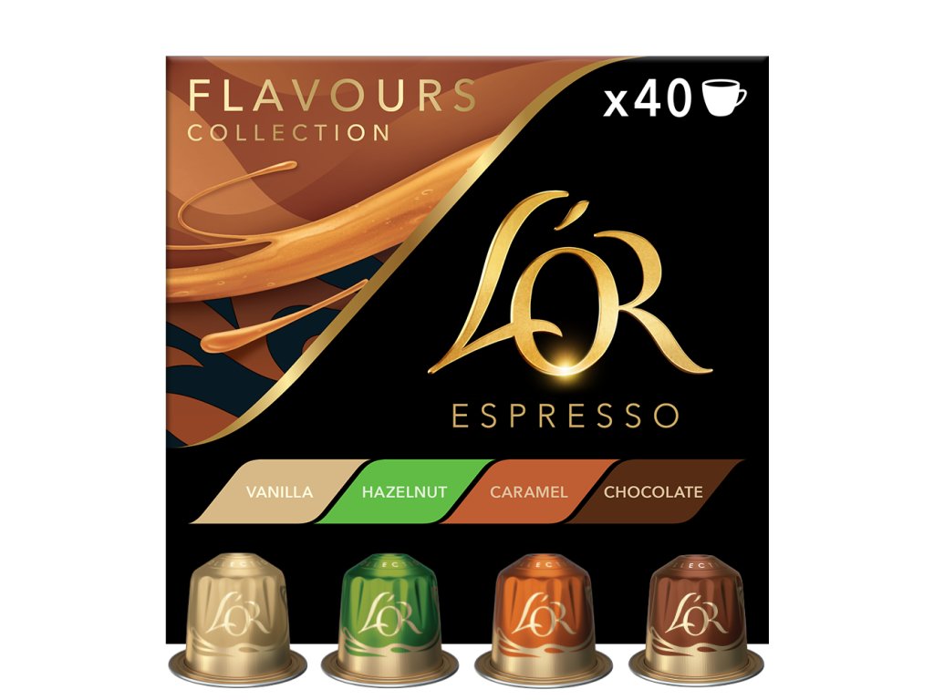 Descubre la colección L'OR Flavours de cafés en cápsulas aromatizados, con espressos suaves con sabores a vainilla, caramelo, chocolate o avellana. Cada variante ofrece un sabor y aroma únicos, ideal como base para un espresso negro, cualquier latte, un cappuccino cremoso o un latte macchiato.