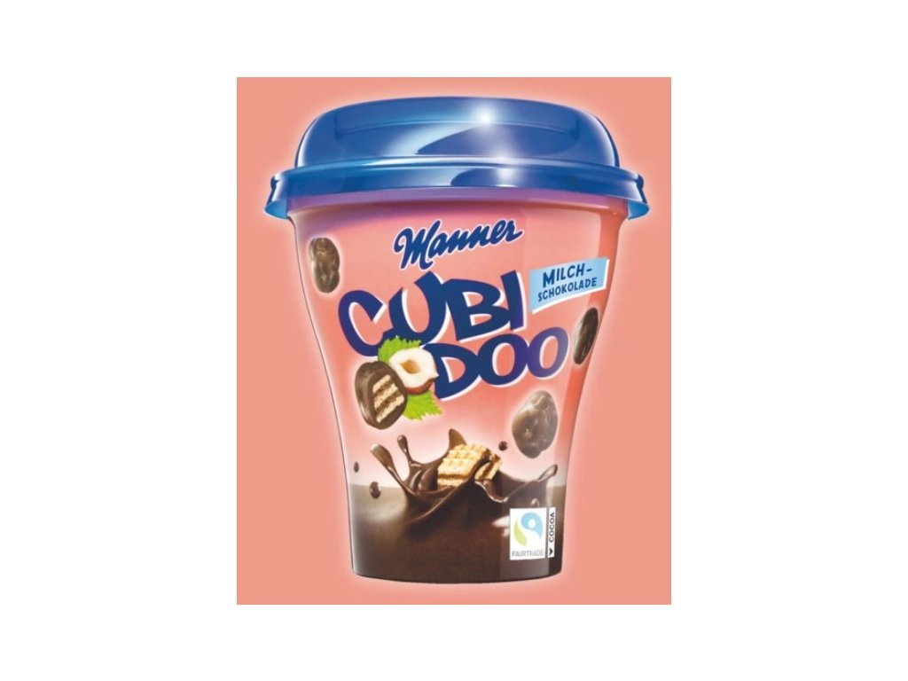 Cuando la oblea se encuentra con el chocolate y una taza. ¡Un capricho crujiente en una taza resellable es el capricho perfecto para la oficina, para llevar o para el cine! Los cubos Manner Cubidoo son deliciosas obleas crujientes con el tamaño perfecto para tu boca. La taza resellable promete una dulce experiencia cinematográfica dondequiera que estés. Estos dulces contienen tres delicadas obleas, elaboradas según la tradición pastelera de 120 años de Manner, rellenas de la popular crema de avellana y cacao Original Manner Napolitananer y cubiertas de chocolate con leche.