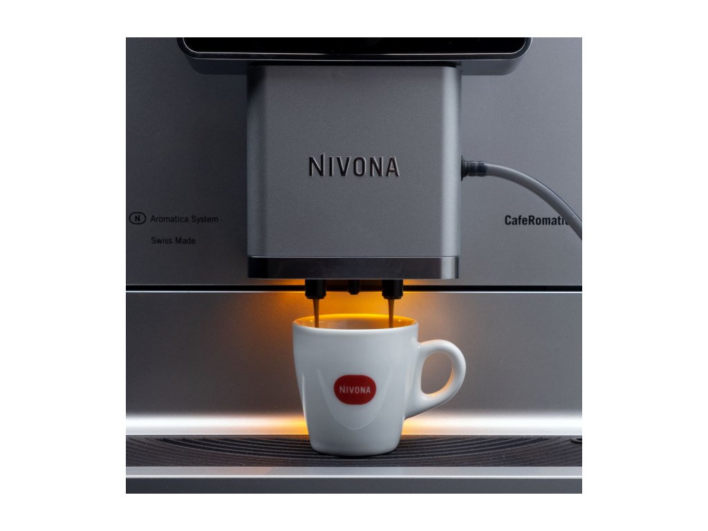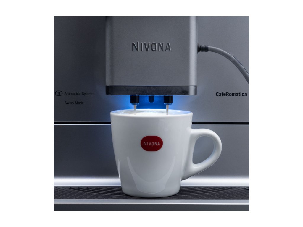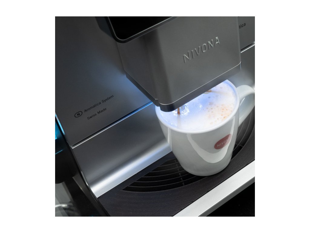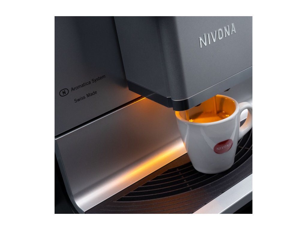 La tecnología moderna se complementa con un diseño moderno, por lo que la NIVONA NICR 960 ofrece dos colores para la iluminación de la taza o del depósito de agua. Puede elegir su favorito entre hasta 8 colores diferentes. Por eso, esta cafetera destacará especialmente en oficinas o hogares modernos.