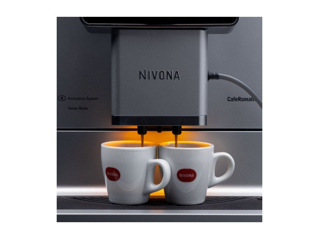 Además, esta cafetera cuenta con la opción de ajustes Barista para los nuevos tipos de café NIVONA gracias a Aroma Pre-Select .