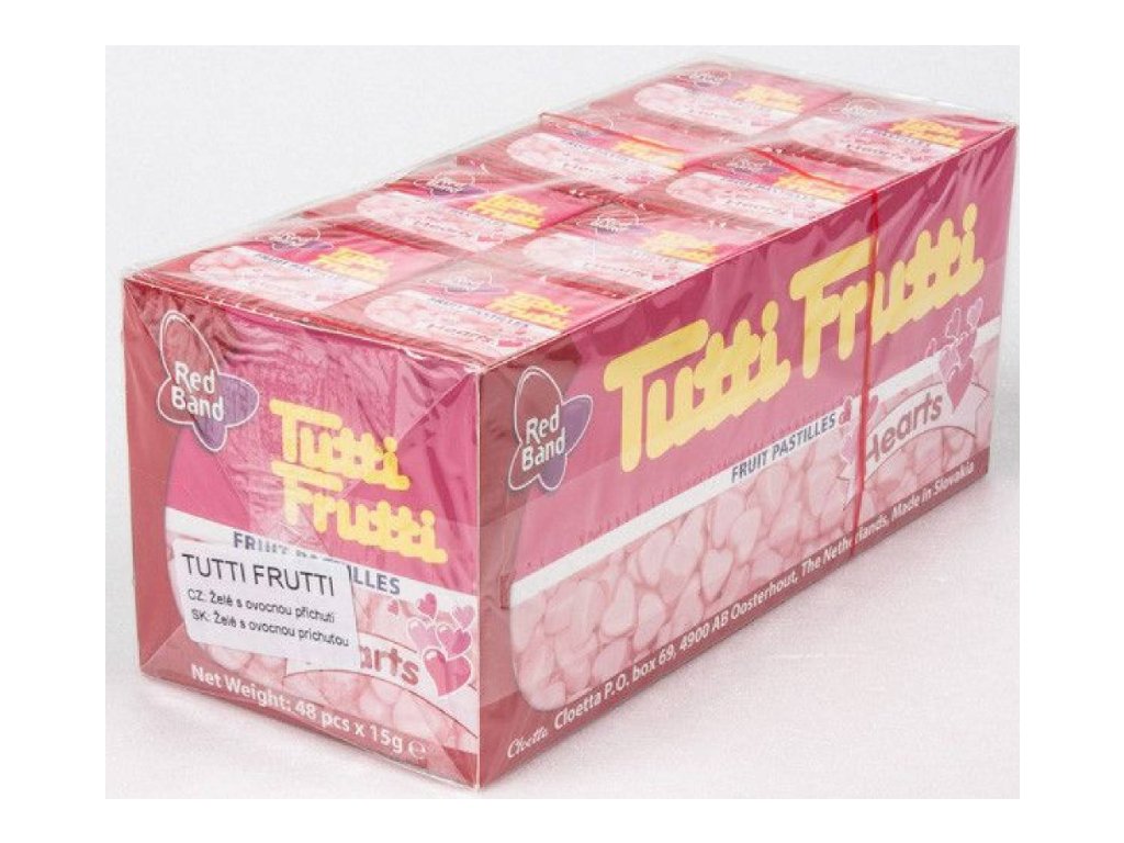 Pastillas de gelatina con sabor a fruta Red Band Tutti Frutti Hearts 48/15 g