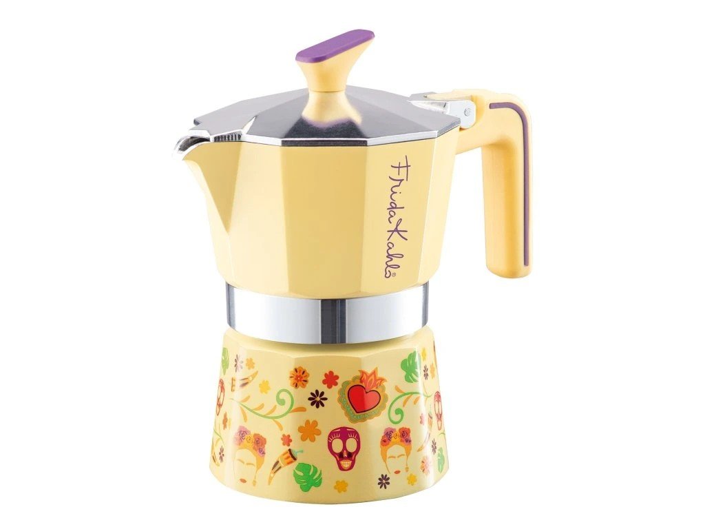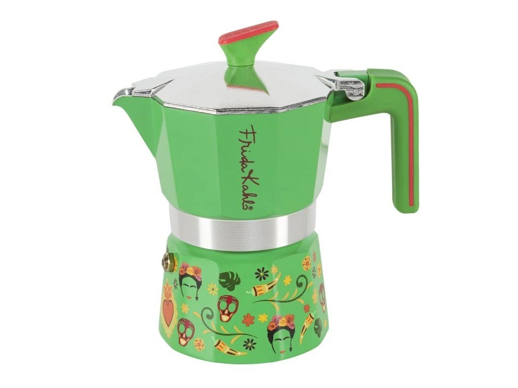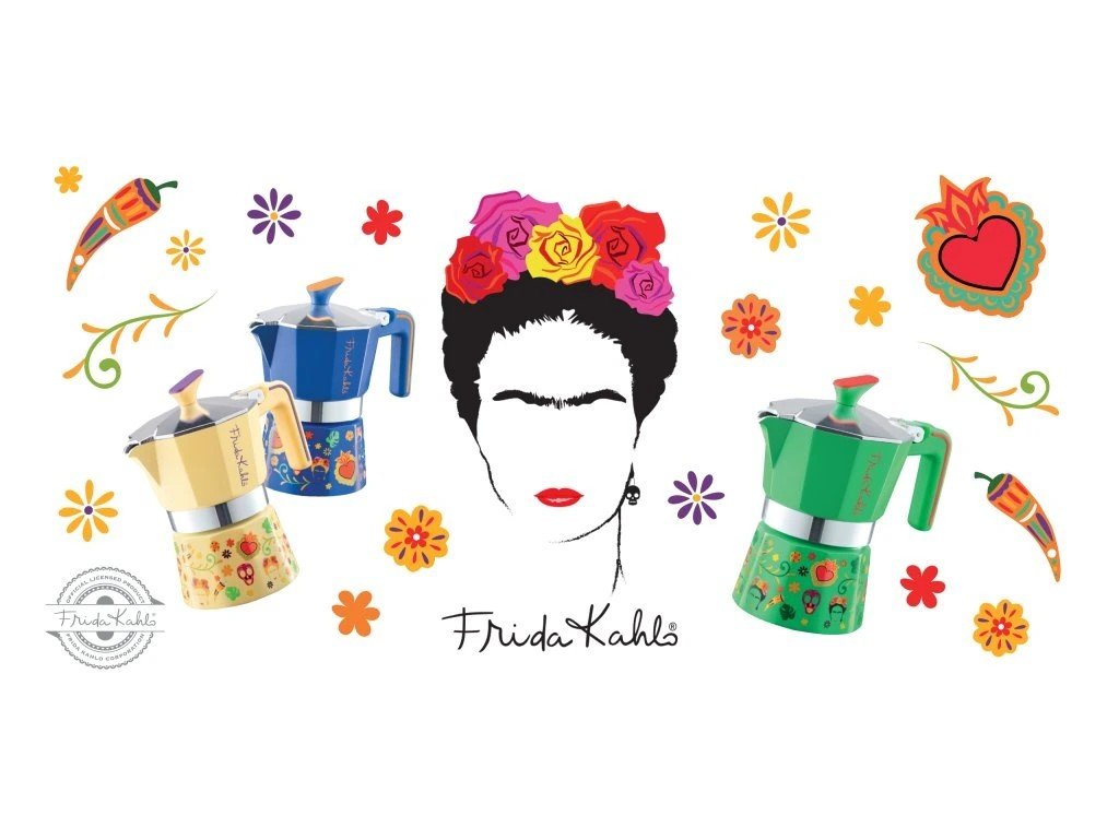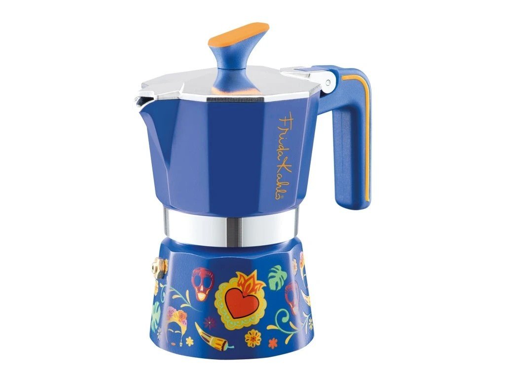 Pedrini Kahlo Blue es una cafetera moka de edición especial que celebra el estilo único de Frida Kahlo . La parte superior de la cafetera lleva la firma de Frida Kahlo , mientras que la inferior está decorada con motivos de la iconografía mexicana , intrínsecamente ligada a su obra. La cafetera está fabricada exclusivamente en Italia con aluminio de alta calidad apto para uso alimentario y cuenta con un asa resistente al calor , junta de silicona y válvula de seguridad , lo que garantiza su fiabilidad y larga vida útil.