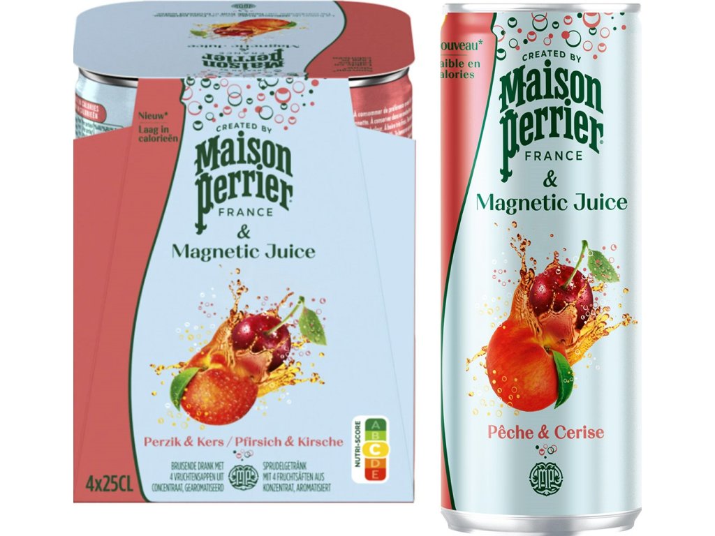 Perrier & Juice – Melocotón y Cereza, lata fina de 250 ml