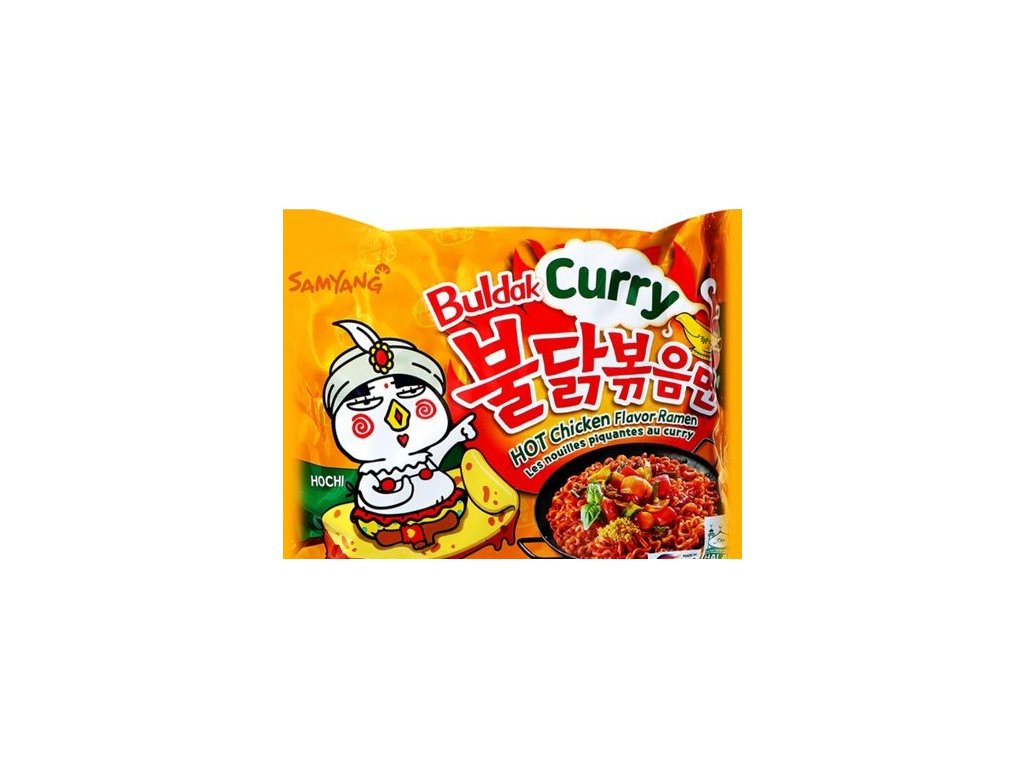 Sopa caliente de fideos instantáneos con sabor a pollo y curry.