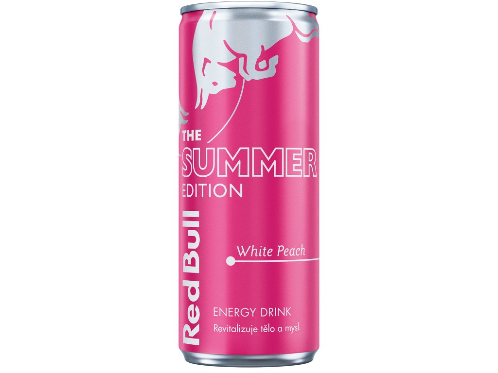 Bebida energética Red Bull con sabor a melocotón blanco.