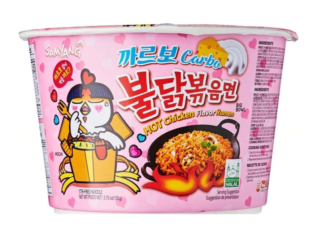 El ramen con sabor a pollo picante Samyang Carbo es una variedad de los fideos Buldak Bokkeum Myeon originales de Samyang.