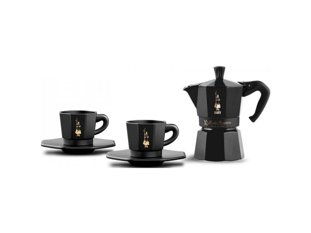Set Bialetti Moka Express negro 3 raciones + 2 tazas