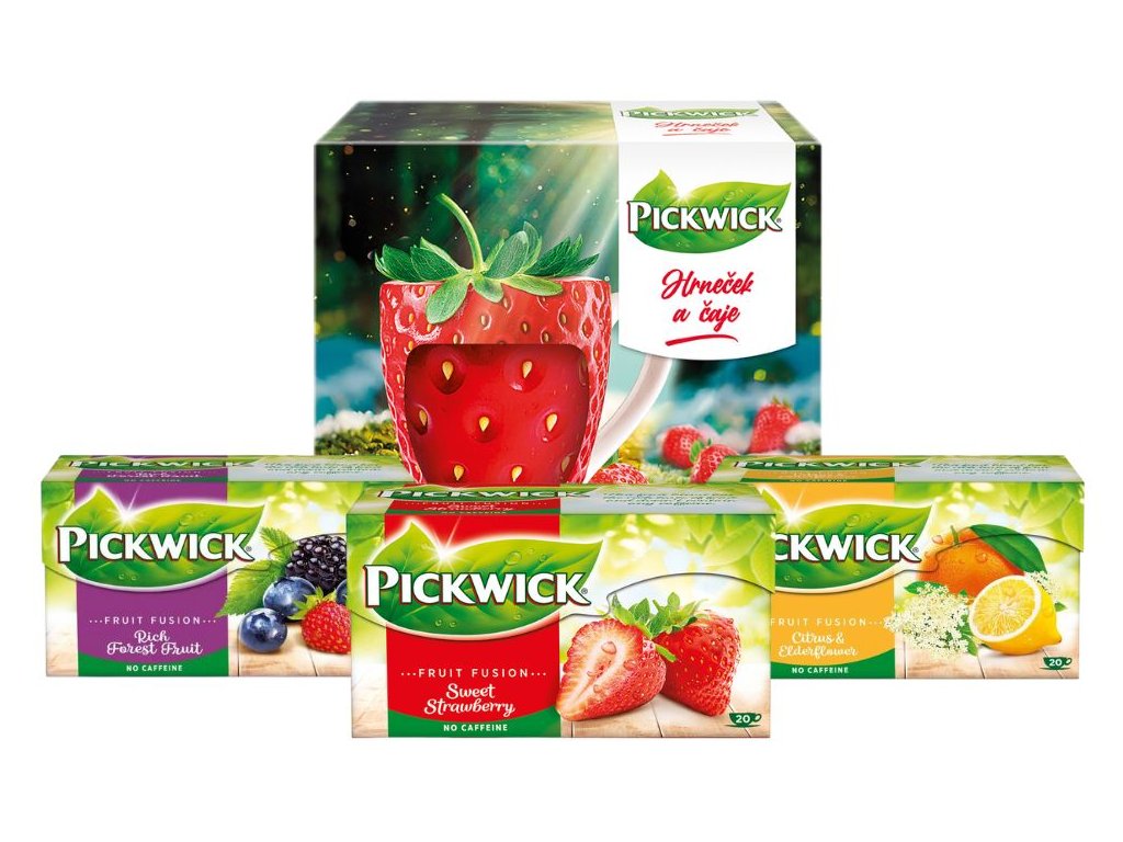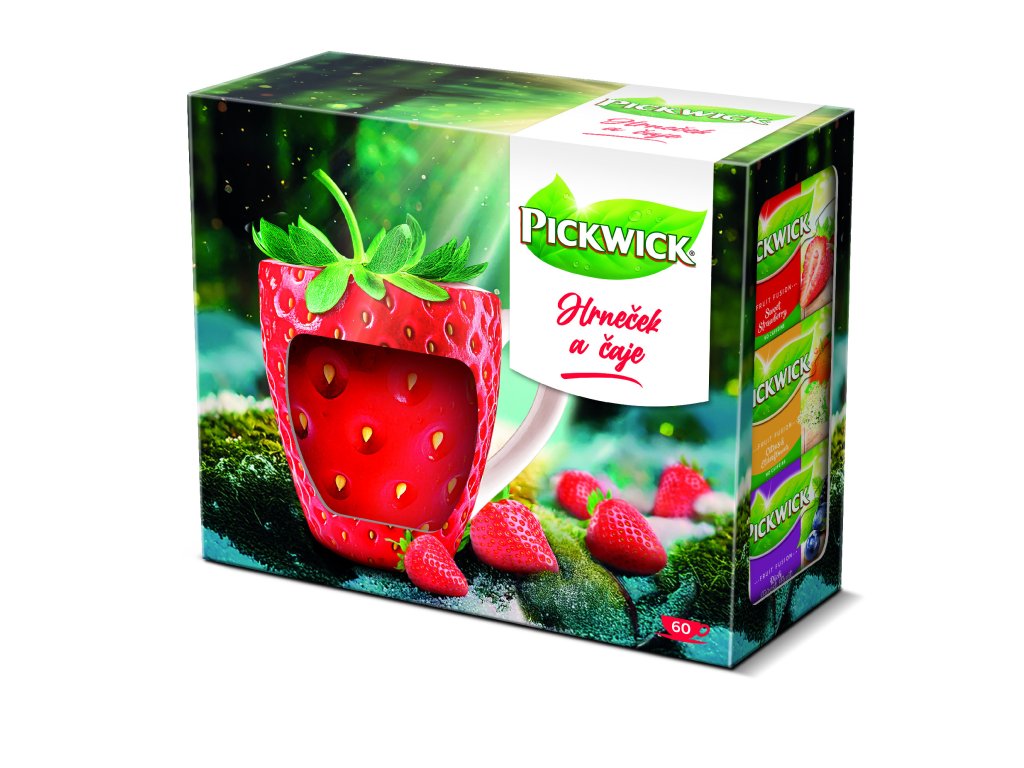Disfruta del sabor de las fresas recién cogidas en una elegante taza con forma de fresa, pintada a mano para Pickwick. El set incluye 3 paquetes de los tés de frutas más populares de Pickwick y una taza de cerámica. Este casete contiene té de fresa dulce, frutas del bosque y cítricos y flor de saúco. El paquete contiene 60 bolsitas de té.