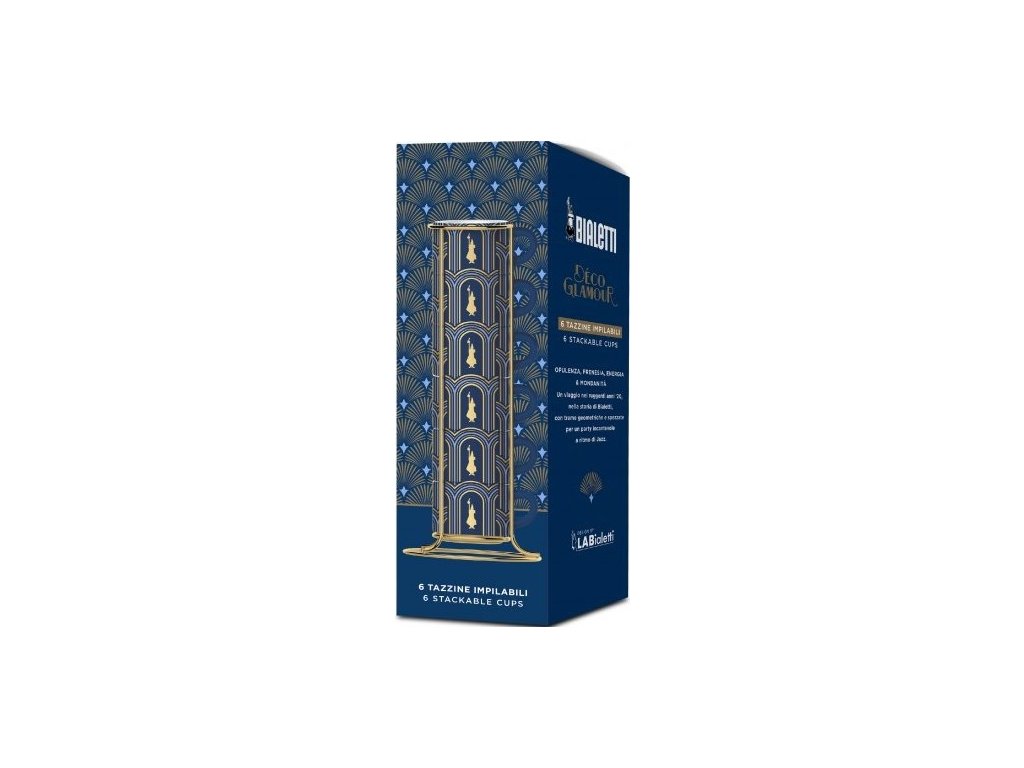Tazas de café expreso Bialetti Moka Deco Glamour Azul con soporte 50 ml 6 uds