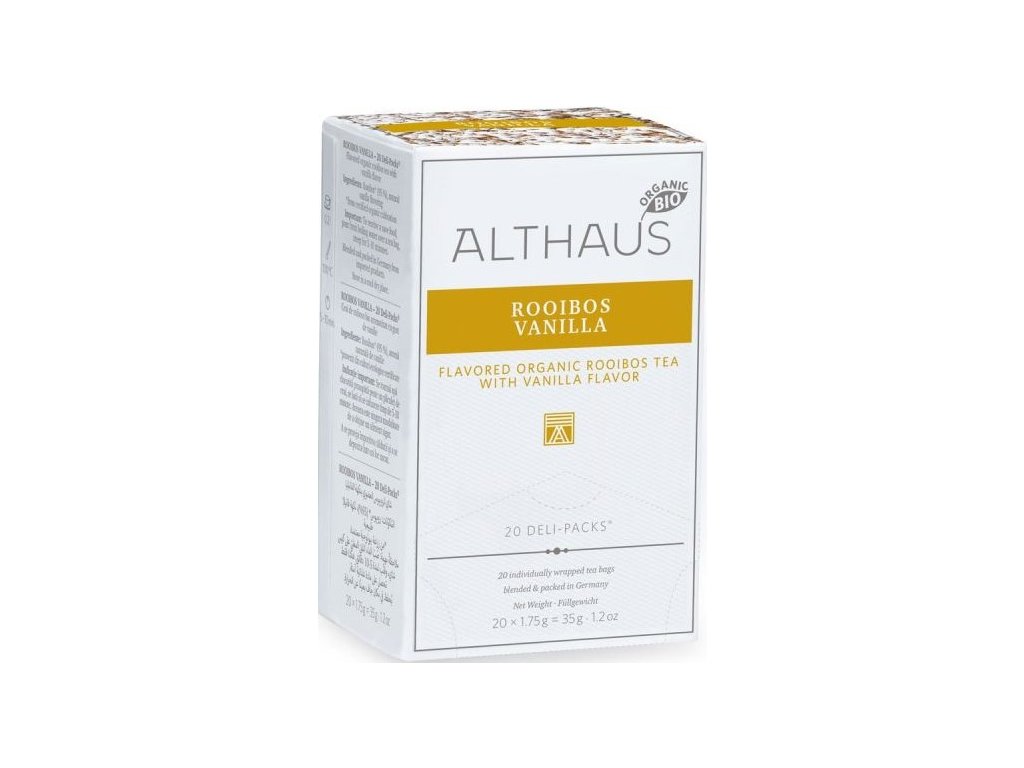 El aroma de vainilla seductora resalta el sabor dulce y terroso del rooibos orgánico.