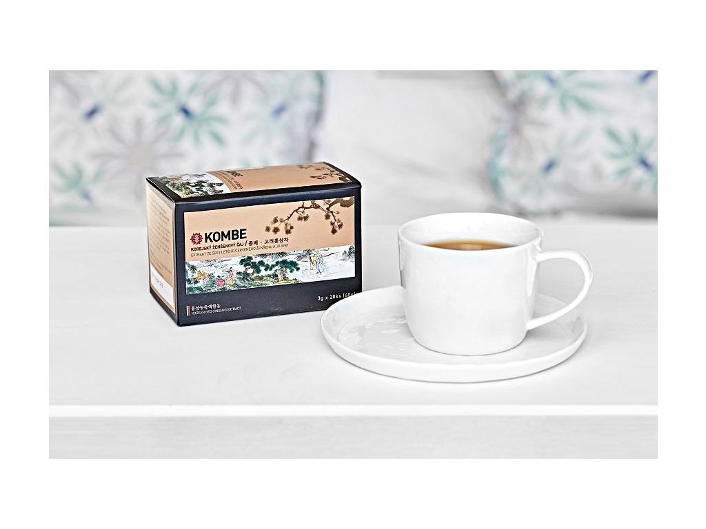 El té se elabora con ginseng coreano, cultivado en la zona donde se originó el ginseng silvestre y rico en saponinas. Su preparación utiliza un extracto de una raíz roja de seis años y, para preservar todas las propiedades beneficiosas del ginseng , se siguen los principios del proceso de producción tradicional coreano. El efecto del té Kombe comienza gradualmente, pero es duradero. El té Kombe es naturalmente libre de gluten, colorantes ni conservantes añadidos. No contiene sabores artificiales y es apto para veganos.