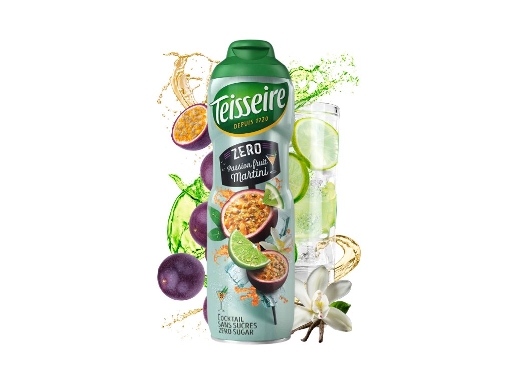 El jarabe Teisseire Passion Fruit Martini contiene zumos de fruta concentrados, pero no contiene alcohol. Se presenta en una botella 100 % reciclable, con la que se pueden preparar aproximadamente 39 raciones. Los jarabes Teisseire se elaboran en Francia desde 1927 y se distinguen por su delicioso sabor.
