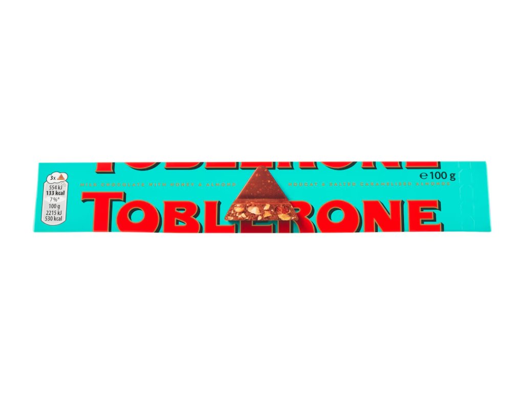 Toblerone Chocolate con leche con almendras caramelizadas saladas con miel y turrón de almendras 100g